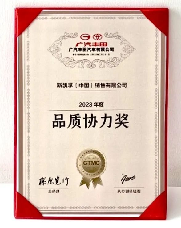 備受認可 | 斯凱孚連續(xù)三年榮獲廣汽豐田“品質(zhì)協(xié)力獎”