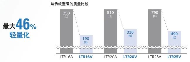 外徑比最大縮小20%(與本公司傳統(tǒng)產(chǎn)品相比較)。