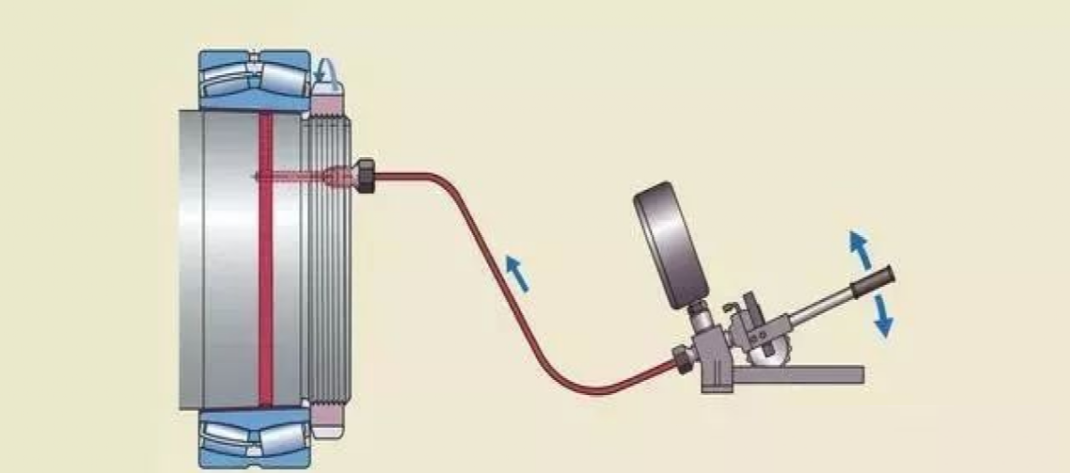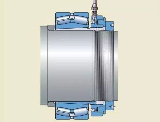 注油法的工作原理是:液壓油在高壓下通過油孔和油槽,注入軸承和軸徑之間的配合面,形成一層油膜。油膜將配合面分開,使得配合面之間的摩擦大幅減少。這種方法通常用于直接把軸承安裝在圓錐形軸徑上的情況。必須的油孔和油槽應是整體軸設計的一部分。如果緊定套和退卸套,已加工有油孔油槽,這種方法也可用于將軸承安裝在緊定套或退卸套上。