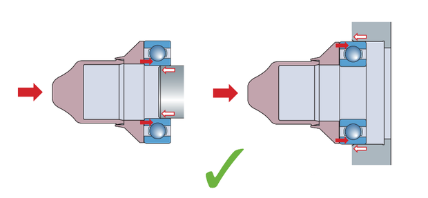 大部分軸承都采用壓入法進行安裝。如果要將軸承的內外圈同時裝到軸上和軸承座中,必須確保以相同的壓力同時作用在內外圈上,且必須與安裝工具接觸面在同一平面上。